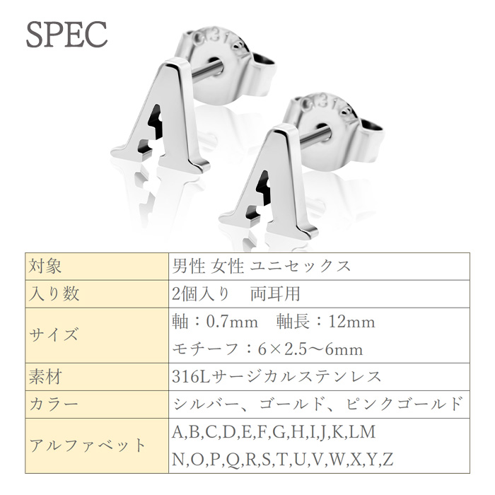 ■ イニシャルアルファベット ステンレス ピアス(1ペア)