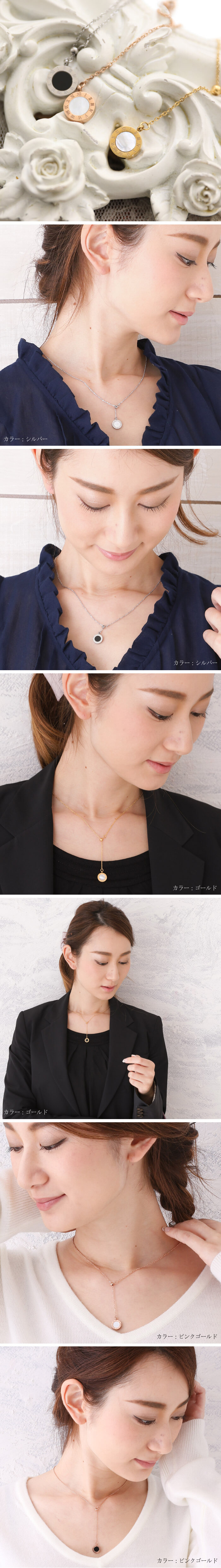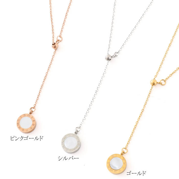 ■ 2カラー クロックデザイン Y字 ステンレス ネックレス