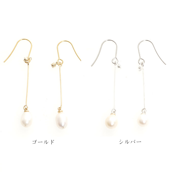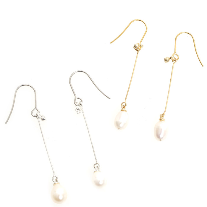 シンプルなスティックの先にパールの付いたフックピアスです。
