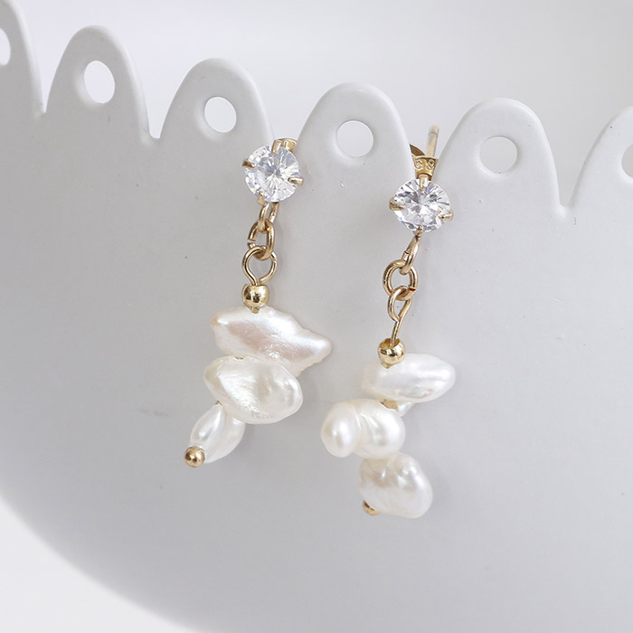 柔らかい雰囲気が印象的な淡水パールは、あえて自然な形のまま使用。