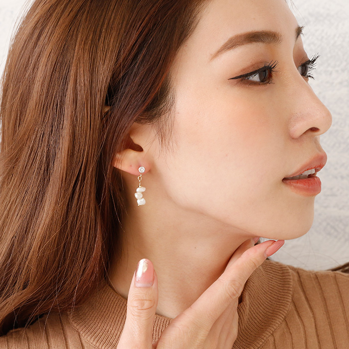 肌なじみの良いゴールドカラーをベースにしているので淡水パールがよく映えてお顔周りを明るくしてくれます。